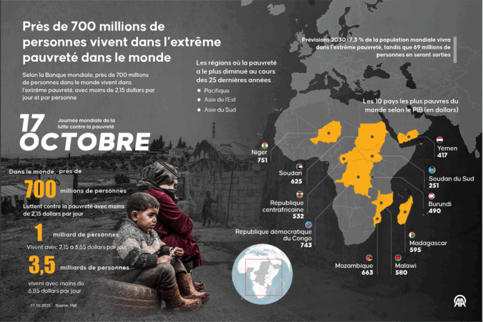 Selon la Banque mondiale, près de 700 millions de personnes dans le monde appartiennent à la catégorie des « extrêmement pauvres », vivant avec moins de 2,15 dollars par jour par habitant.